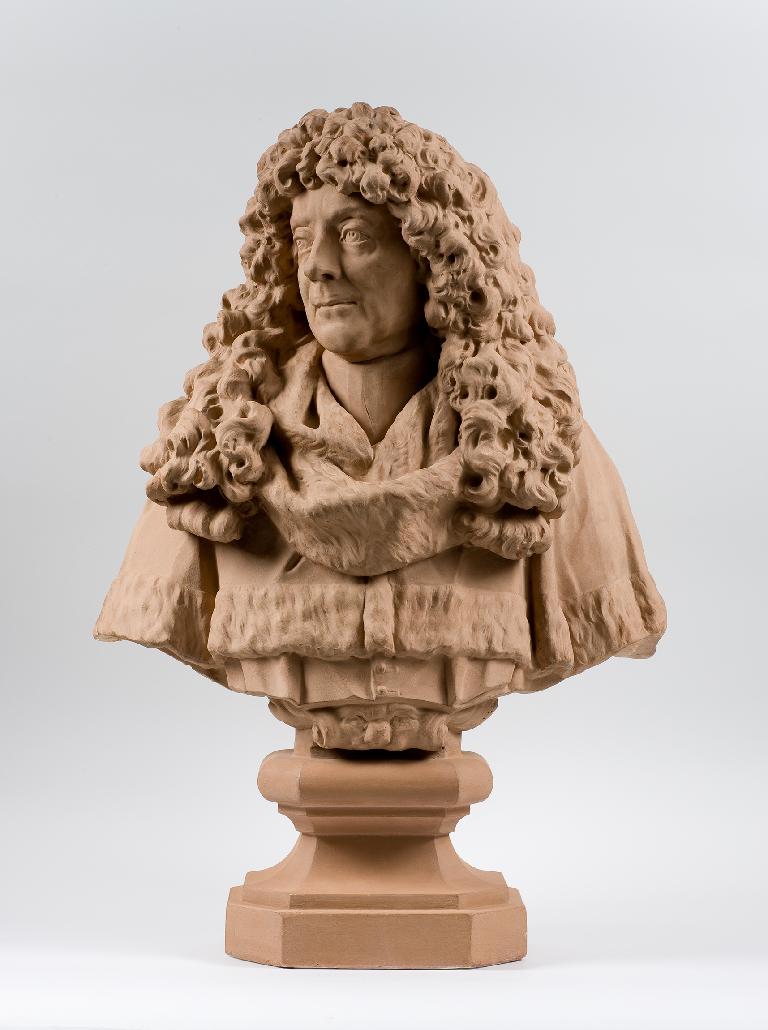 Ces deux bustes proviennent de la chapelle funéraire qui avait été attribuée à Jean Deydé en 1643 dans la cathédrale Saint-Pierre de Montpellier. En 1668, Deydé confie à Pierre Puget (1620-1694) la direction de la nouvelle décoration somptueuse, tout en marbre, de sa chapelle dont la sculpture sera exécutée par le Génois Francesco Macetti (1619-1687). En 1679, à la mort de sa seule fille, Constance, âgée de cinq ans, Deydé fait sculpter son buste par un artiste anonyme, peut-être le Toulousain Marc Arcis (1652/1655-1739). Destiné à son hôtel particulier, rue du Cannau à Montpellier, il est à présent conservé au musée Fabre. La peine causée par ce décès précoce l’amène probablement à commander vers 1684 au neveu par alliance de Puget, Christophe Veyrier, une urne funéraire (collection particulière) et deux bustes en marbre : le sien et celui de son épouse, pour les placer dans sa chapelle. Entourant l’épitaphe sur un mur latéral, les deux bustes devaient conserver leur mémoire dans l’éternité. Les deux effigies possèdent cette variété dans le rendu des matières, cette souplesse des chairs et cette subtile modulation des plans qui rendent sensibles par la mobilité des traits la vie et l’âme des modèles. Le mouvement de rotation de la tête est comme accompagné par celui du riche tissu du voile de Catherine et de la perruque de Jean. L’effet général est celui d’un baroque apaisé. Le musée conserve également un moulage ancien en plâtre d’après un second buste en marbre de Jean Deydé sculpté par Veyrier pour son hôtel particulier, différent de celui prévu pour la chapelle. Placé sur une majestueuse gaine en marbre polychrome ornée des armes de la famille, il est conservé au Metropolitan Museum of Art à New York. Enfin, au sein de la cathédrale, de nombreux indices issus de ce décor permettent aujourd’hui encore de deviner la gloire de la chapelle, démantelée à la Révolution : un Songe de saint Joseph de Nicolas Mignard (1606- 1668), et une Fuite en Égypte de Giovanni Battista Carlone (1603-1684). Cet ensemble artistique est un élément important de l’art funéraire du Grand Siècle, sans pareil à Montpellier et dans le Languedoc.
