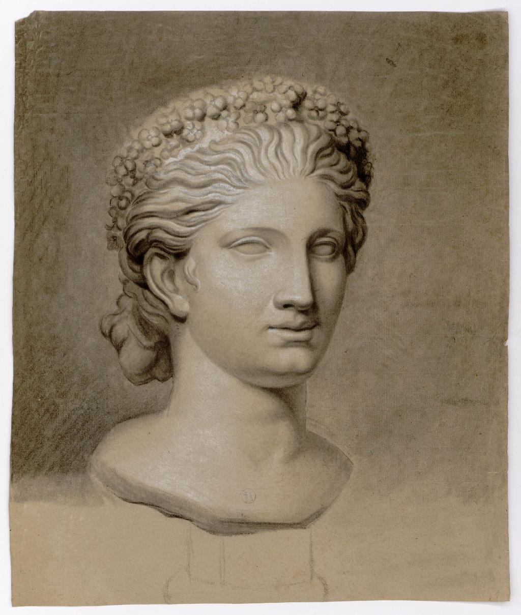 Tête de jeune femme couronnée de fleurs