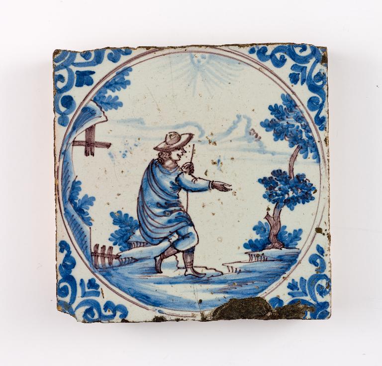 Carreau de revêtement, décor à sujet pastoral