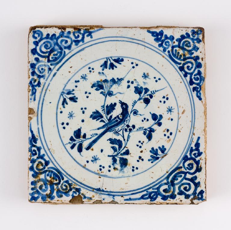 Carreau de revêtement, oiseau dans un semis de fleurs et étoiles