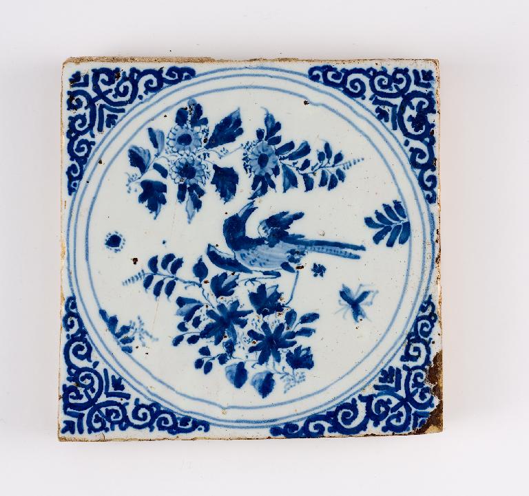 Carreau de revêtement, oiseau et insecte dans un bouquet de fleurs, rosettes