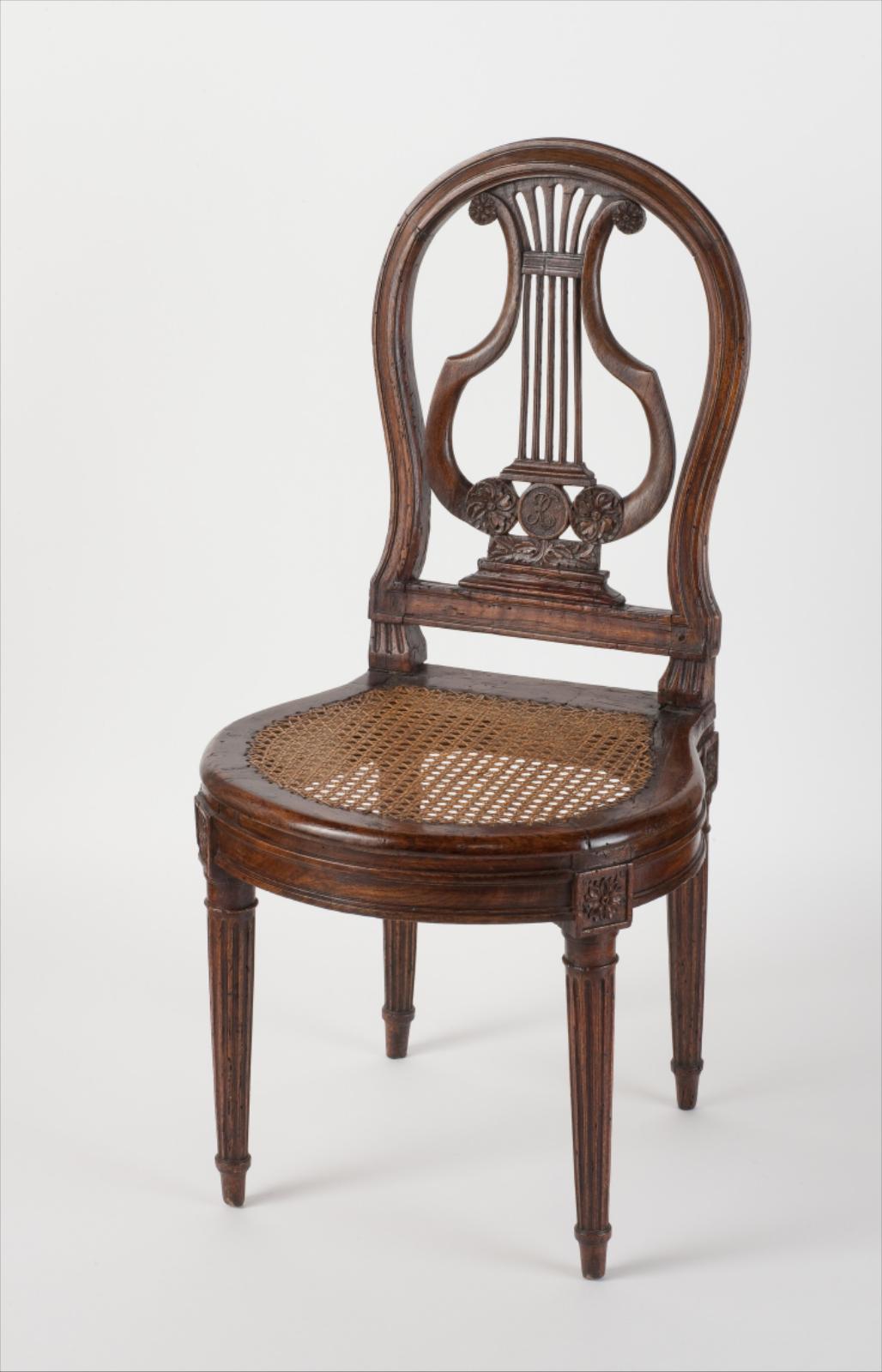 Chaise cannée, dossier ajouré en forme de lyre