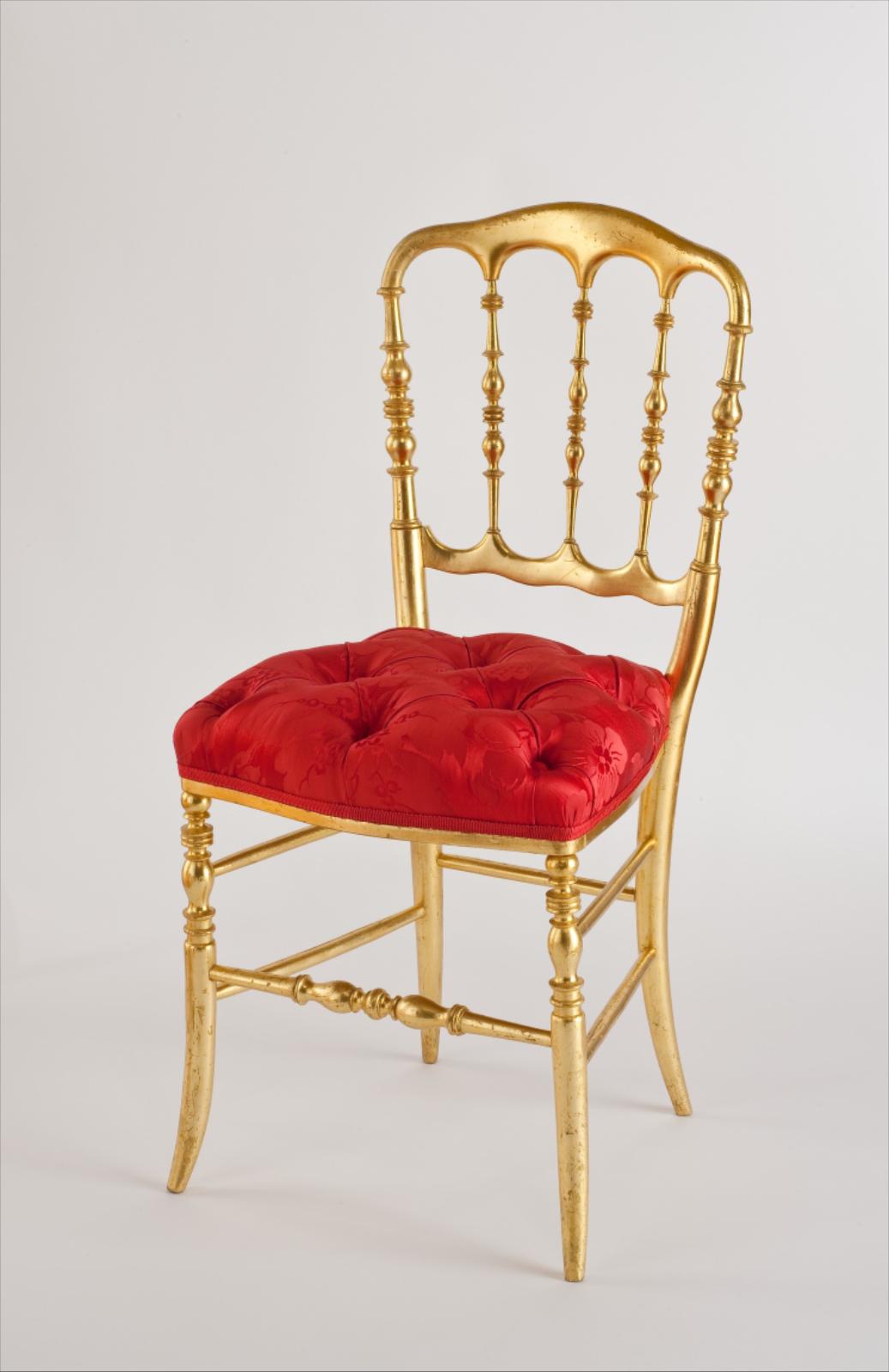 Chaise volante, garniture de damas de soie rouge capitonnée