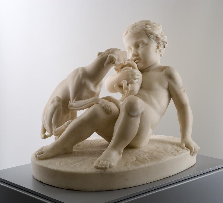 Enfant jouant avec une levrette