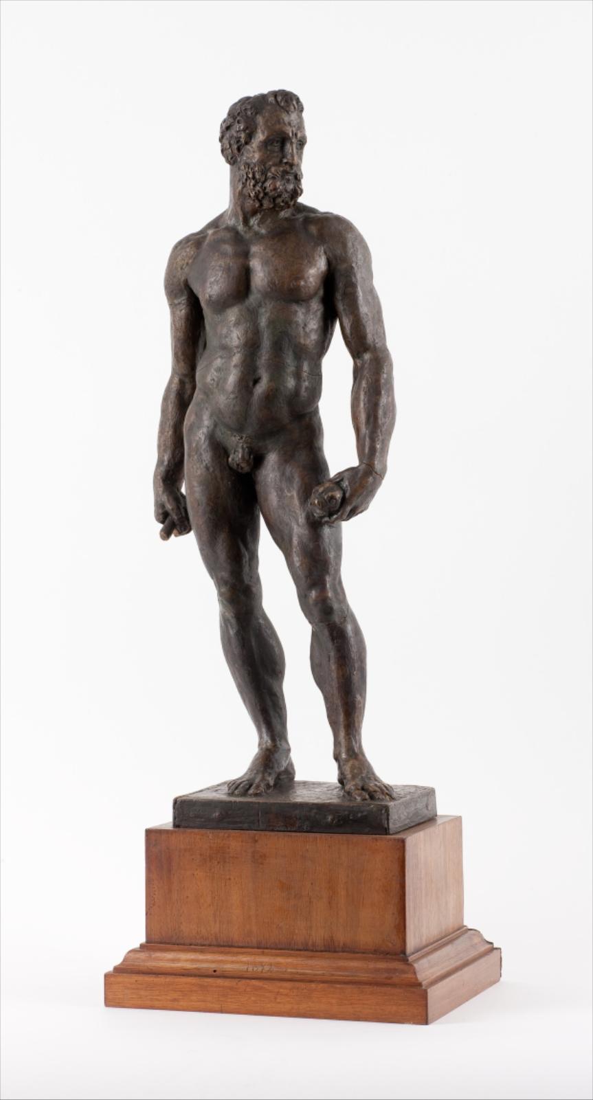 Attribué par erreur au début du xxe siècle au sculpteur néoclassique Lorenzo Bartolini, ce Neptune a pu retrouver en 2011 son véritable auteur : le sculpteur florentin de la Renaissance Baccio Bandinelli. L’ancienneté et la rareté de cette oeuvre – les sculptures modelées en cire au xvie siècle étant particulièrement peu nombreuses à avoir été conservées – n’étaient cependant pas ignorées de son donateur, François-Xavier Fabre, qui l’attribuait à Bartolomeo Ammannati (1511-1592), autre artiste florentin célèbre pour avoir sculpté le grand Neptune de la place de la Seigneurie dans la capitale toscane. De fait, la cire du musée Fabre est bel et bien le modello initial de ce projet, qui avait été confié en 1558 à Baccio Bandinelli par le grand-duc de Florence Côme Ier (1519-1574). Ce dernier, qui développait alors le port de Livourne, souhaitait ainsi démontrer ses ambitions maritimes en plaçant le dieu des Eaux au coeur de Florence. Se présentant sous l’apparence d’un homme barbu au corps massif, il est identifiable grâce au bâton de commandement qu’il tient dans la main droite et au poisson dans la main gauche. La musculature outrée, le contrapposto très prononcé et la dynamique induite par la tête tournée du dieu sont caractéristiques du maniérisme florentin, en particulier des sculptures de Bandinelli qui avait déjà exécuté le groupe d’Hercule et Cacus placé devant le Palazzo Vecchio. La pose de l’Hercule et celle du Neptune sont d’ailleurs très proches, mais Bandinelli, mort en 1560, n’aura pas le temps d’exécuter cette dernière sculpture. C’est donc à Ammannati qu’incombera la tâche de tailler ce colosse de marbre surnommé Il Biancone, achevé en 1565 et culminant à plus de cinq mètres de haut. Des bronzes seront fondus par la suite d’après la cire de Montpellier, aujourd’hui conservés à Rome (Galleria Colonna) et à Washington (National Gallery of Art).