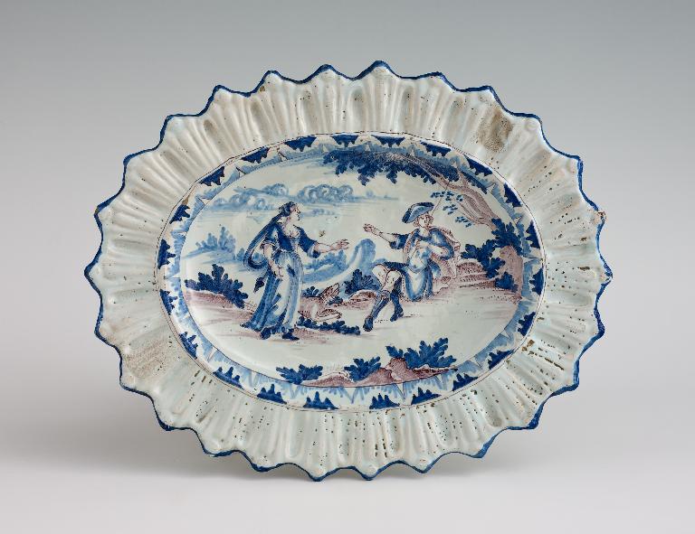 Plat à aile godronnée, décor à la scène pastorale