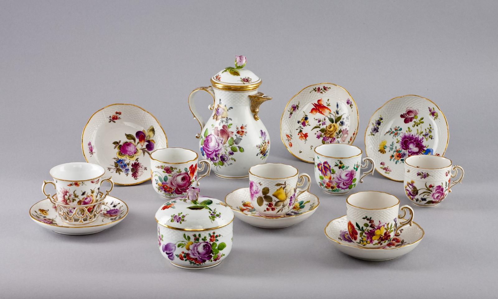 Service à café, décor floral : tasse