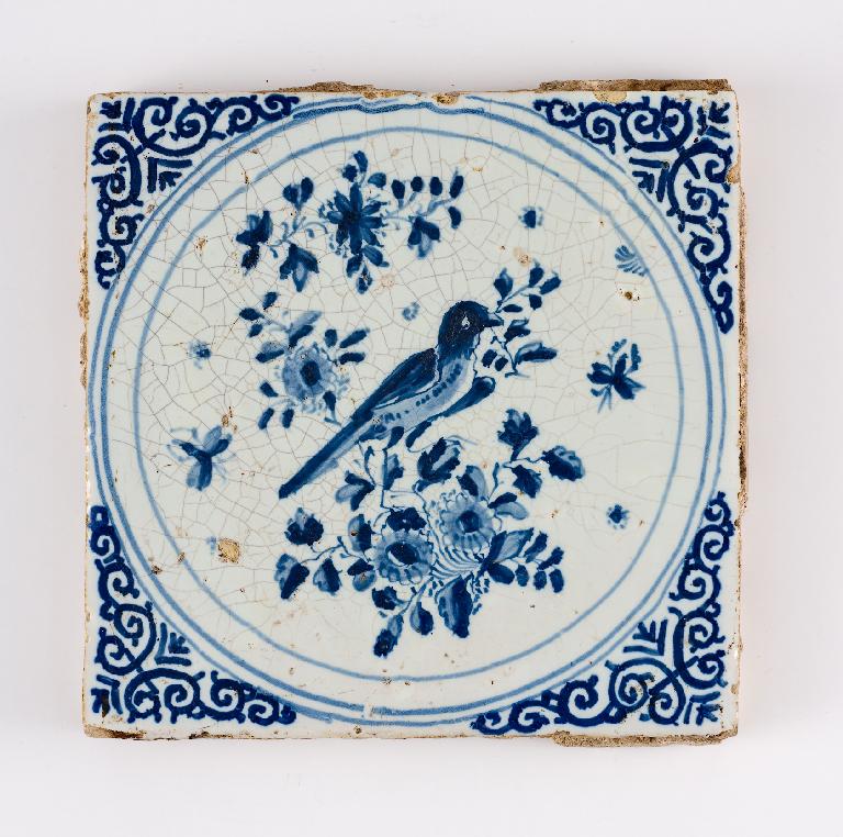 Carreau de revêtement, oiseau dans un semis de fleurs et insectes