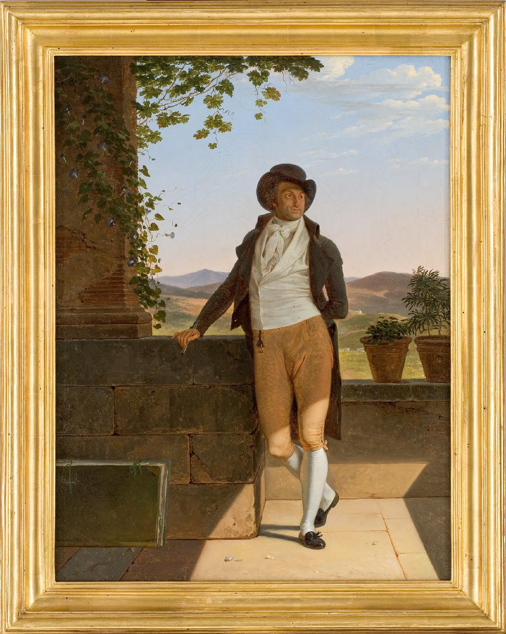 Fuyant Rome en 1793, Gauffier retrouve à Florence de nombreux compatriotes, comme Boguet (1755- 1839), Gagneraux (1756-1795) et Fabre (1766-1837) qui devient son ami. Il se spécialise alors dans le portrait aristocratique d’une riche clientèle de Russes ou d’Anglais, de passage en Toscane. Le portrait du musée Fabre est l’un des plus beaux exemples conservés de cette veine mondaine. On sait peu de choses sur Guillaume Joseph Coclers Van Wyck, originaire de Liège et frère de Philippe Henri, directeur de l’Académie de peinture de Marseille de 1785 à 1793. Le modèle à l’allure élégante et spirituelle se détache en un « contre-jour hardi » sur un paysage toscan baigné dans une forte lumière. La tenue est soignée : veste bleu-vert, gilet blanc, culotte de nankin, et les attributs du peintre sont clairement mis en évidence (stylet dans la main droite, carton à dessin appuyé contre le parapet de la terrasse). Malgré la sobriété de la mise en page, la rigueur géométrique, la recherche de vérité héritée de l’école de David, le portrait se distingue aussi par ses innovations qui sont la marque essentielle de Gauffier. Il s’écarte des modèles héroïques et de l’échelle monumentale du maître, pour s’en tenir à un canon plus menu des figures, à une recherche de naturel, d’élégance, et d’un certain « art de vivre » aristocratique. Le parapet régulièrement appareillé et le pilastre rappellent l’antique mais sans lourdeur. Gauffier aime au contraire les formes fluides, dansantes presque, les beaux détails naturalistes qui apportent tout leur charme à la composition, comme ici la guirlande de vigne et de liseron à gauche, ou encore les plantes dans les pots à droite. L’ombre rafraîchissante, la lumière qui glisse sur le doux vallonnement des terrains, le regard tourné vers l’extérieur, l’expression de bonheur composent un poème inoubliable à la gloire de la Toscane qui abrita durant les dernières années du xviiie siècle un foyer artistique annonçant à bien des égards toute la modernité de l’époque suivante