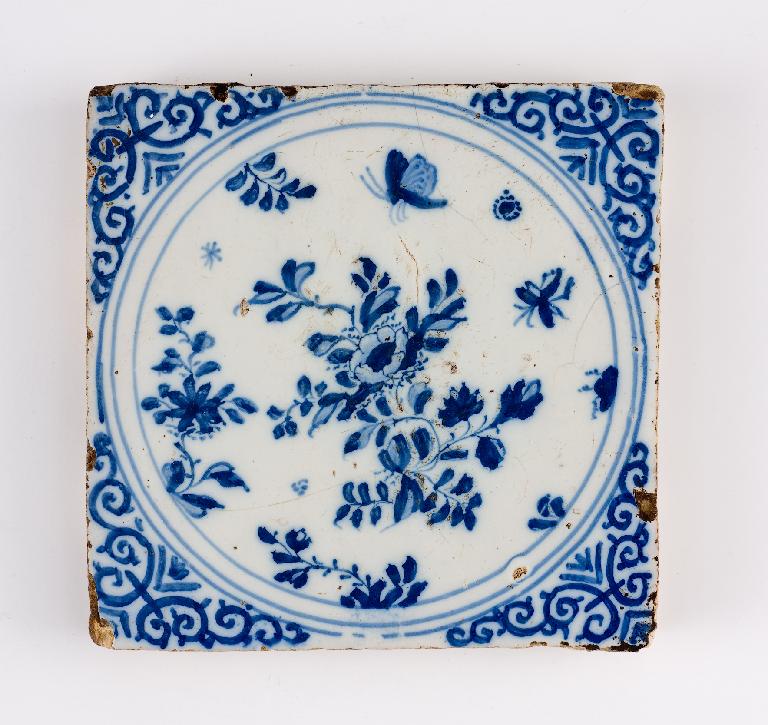 Carreau de revêtement, papillon et insecte dans un bouquet, semis de rosettes et étoile