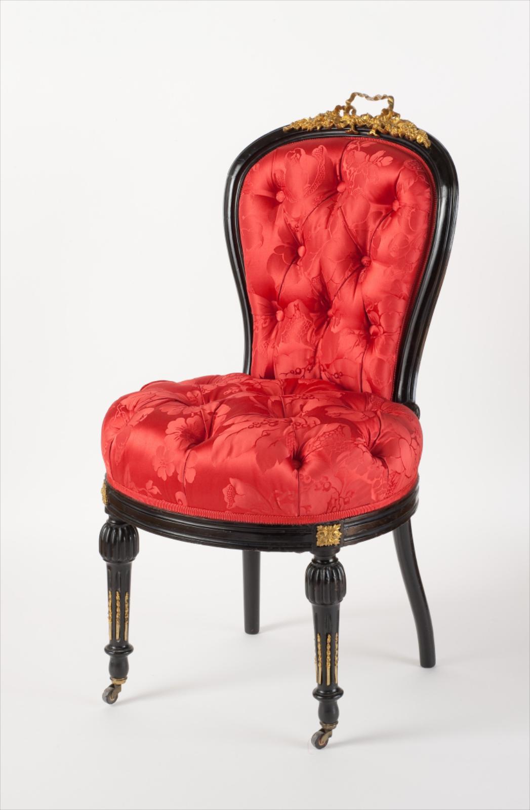 Chaise, garniture de damas de soie rouge capitonnée