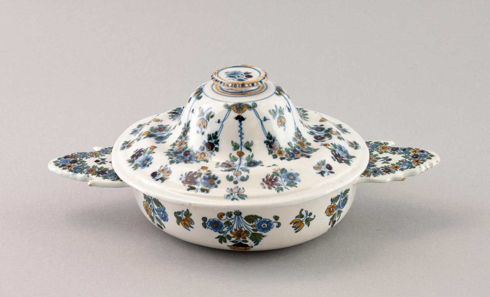 Ecuelle à bouillon couverte, décor "à la fleur de solanée"
