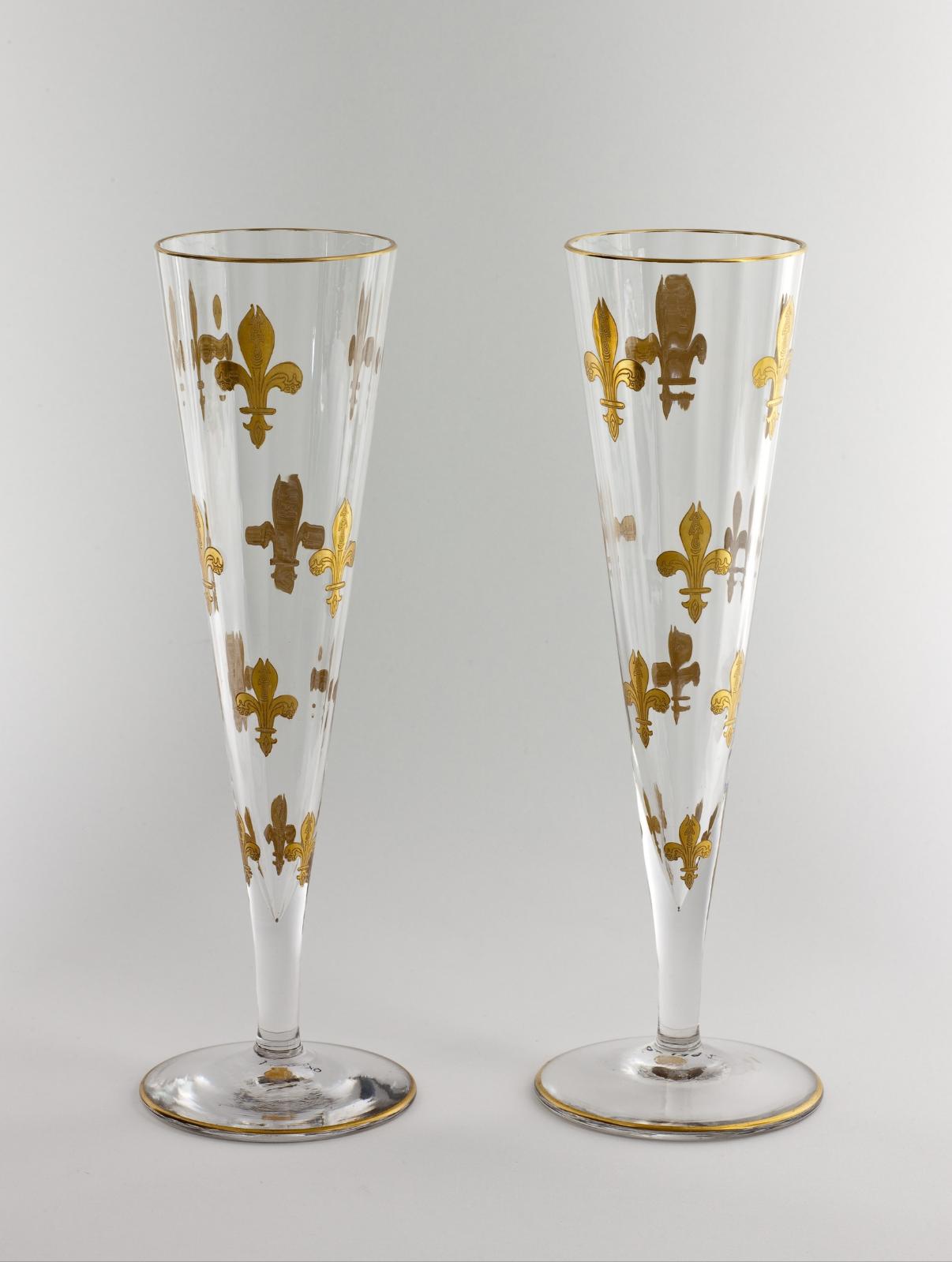Flûte, décor de fleurs de lys dorées
