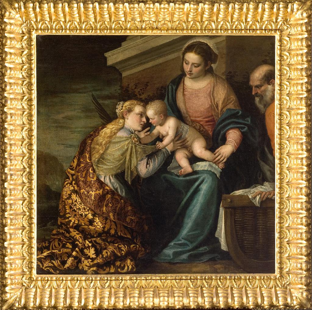 Ce superbe tableau compte parmi les oeuvres les plus attachantes du musée. Le thème, très en vogue à la Renaissance, met en scène une figure purement légendaire dont l’histoire a été rapportée d’Égypte par les croisés : Catherine, fille du roi Costius, était renommée pour sa beauté et sa science. Pour avoir refusé de sacrifier aux idoles, elle fut condamnée une première fois au supplice de la roue, sauvée par le Christ et finalement décapitée. La composition dérive des « conversations sacrées » de Titien (vers 1488-1576) : d’un côté, la Vierge bienveillante et attentive est assise devant un puissant soubassement classique vu de biais ; de l’autre, Catherine, éclatante de jeunesse et de pureté, parée d’un lourd manteau de brocart noir et or qui rappelle ses origines royales, est agenouillée tout près du rebord de la toile. L’Enfant Jésus se penche vers elle avec une expression de douceur ineffable et lui remet l’anneau symbolique du mariage en témoignage de sa foi héroïque. La richesse des textures, l’éclat des carnations, le modelé délicat donnent l’illusion d’une réalité immédiate, tandis que la lumière irréelle ramène le spectateur dans la sphère plus abstraite du rêve et du sacré. Parmi les nombreux tableaux de même sujet peints par Véronèse (Londres, Hampton Court ; Venise, Gallerie dell’Accademia ; Venise, église San Sebastiano), la version de Montpellier appartient à la phase juvénile de l’artiste, vers 1557-1565 – soit après son installation définitive à Venise –, et offre de nombreuses affinités stylistiques avec un ensemble de Sainte Famille datant de la même période. Le tableau, diminué dans sa partie haute, provient de la célèbre collection du marquis Gerini de Florence où Fabre en fait l’acquisition. Frédéric Bazille (1841-1870) copia le tableau du musée Fabre en 1864. Après la mort du peintre, son père Gaston Bazille offrit le tableau à l’église de Beaune-la- Rolande, en remerciement de l’aide que le prêtre lui avait apportée pour retrouver le corps de son fils bien-aimé