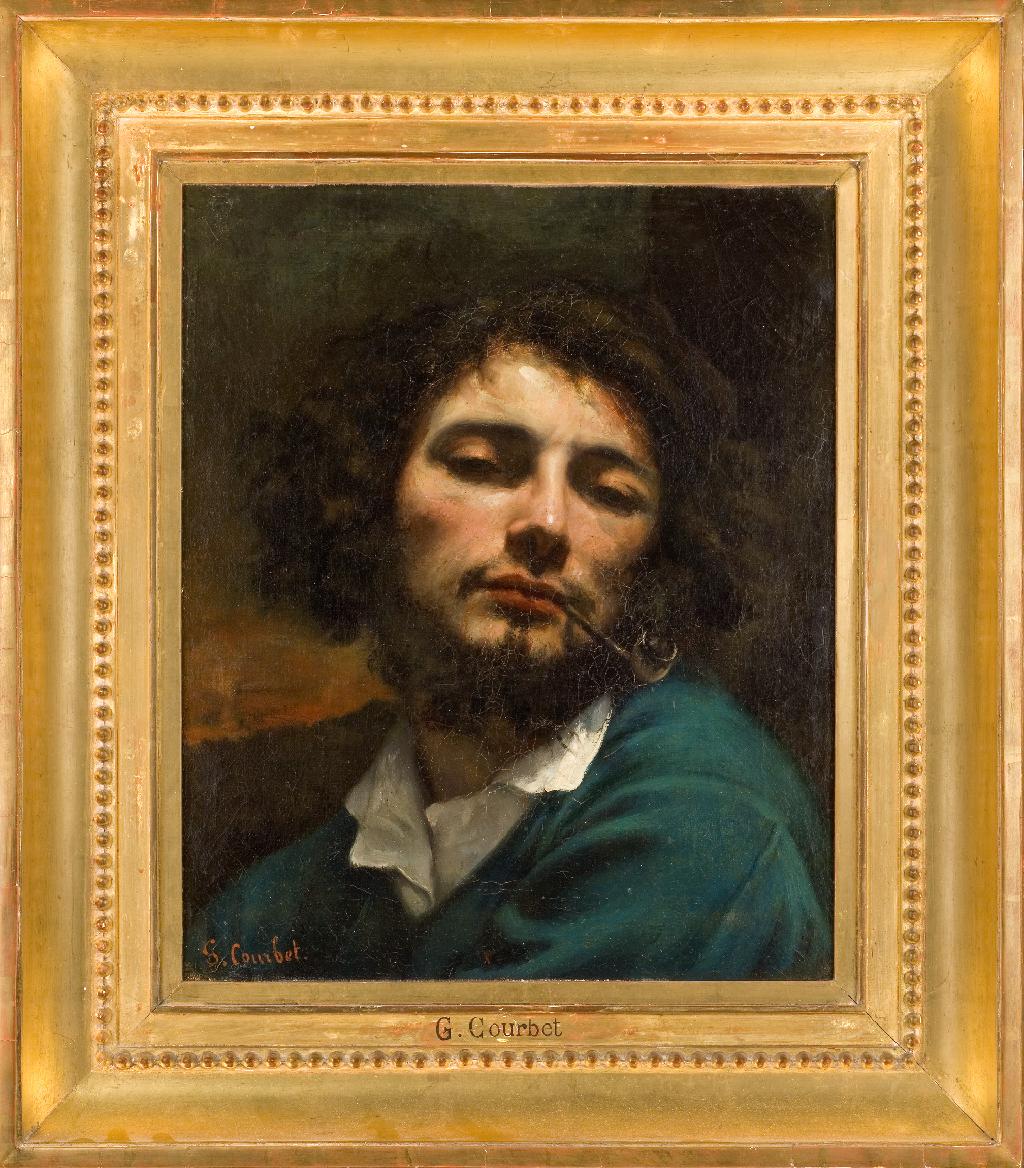 L’Homme à la pipe de Courbet, un des joyaux de la galerie Bruyas, s’inscrit dans la longue série des autoportraits de Courbet qui s’échelonnent de 1842 à 1855. Chaque image correspond à une étape de l’évolution artistique du peintre. Renonçant à tout artifice, Courbet choisit d’offrir son visage, le plus près possible du rebord de la toile, dans un moment d’intimité : cheveux en broussaille (la radiographie a révélé la présence d’un bonnet à l’origine), barbe noire suivant les belles sinuosités du visage, larges paupières baissées, lèvres vermeilles et sensuelles qui retiennent en leur coin une petite pipe (attribut obligé de l’artiste en bohémien), accoutrement sans apprêt particulier, col ouvert, rude tunique de travailleur. La légère torsion du cou et du buste, bien peu naturelle, fait surgir avec une incroyable soudaineté cette tête trophée perdue dans une mystérieuse rêverie. Ce gros plan, particulièrement hardi, a pour objectif d’amener le spectateur au plus près de l’expérience picturale de l’artiste qui cherche à s’affranchir des conventions du temps pour s’en tenir à la restitution de la réalité la plus immédiate et la plus charnelle. D’où les ombres denses qui creusent le visage en lui conférant une impression d’apparition, la pâte crémeuse et luisante sur le front, le nez et le revers blanc du col. Cette proximité matérielle du corps ainsi restituée apparaît chez Courbet comme un véritable manifeste artistique et l’on comprend mieux le sens des mots envoyés à son mécène Bruyas au moment de l’achat du tableau en 1854 : « C’est non seulement mon portrait, mais encore le vôtre. J’ai été frappé en le voyant ; c’est un élément terrible pour notre solution. C’est le portrait d’un fanatique, d’un ascète, c’est le portrait d’un homme désillusionné des sottises qui ont servi à son éducation et qui cherche à s’asseoir dans ces principes. » Cette percée naturaliste qu’exprime magistralement le tableau est parfaitement en consonance avec les professions de foi du cercle de la brasserie Andler, à deux pas de l’atelier de Courbet à Paris, dans lequel évoluent le poète Baudelaire, le penseur Trapadoux et le critique Champfleury. La connaissance de l’art des maîtres du Nord admirés lors du voyage en Hollande en 1846 et sans doute aussi des Espagnols (comme le pensait Bruyas) a conforté Courbet dans ses choix esthétiques. Le portrait, remarqué dès sa présentation au Salon de 1850-1851, échut à Bruyas à la grande satisfaction de Courbet qui se félicita qu’il ait échappé « aux barbares » et au prince-président lui-même ! Présenté à l’Exposition universelle de 1855 puis à nouveau lors de l’exposition particulière des oeuvres de Courbet en 1867, le tableau fut copié à plusieurs reprises par l’artiste, ce qui en dit long sur la célébrité et le caractère exceptionnel du tableau acquis par le collectionneur.