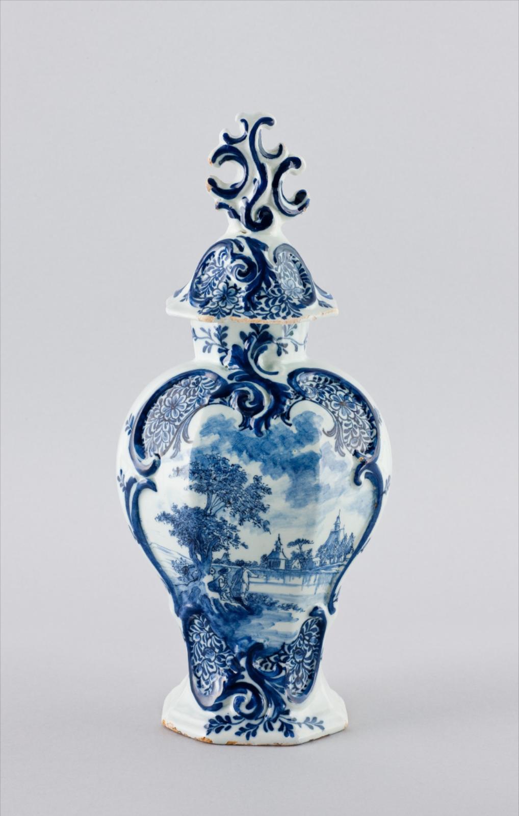 Vase couvert, décor champêtre